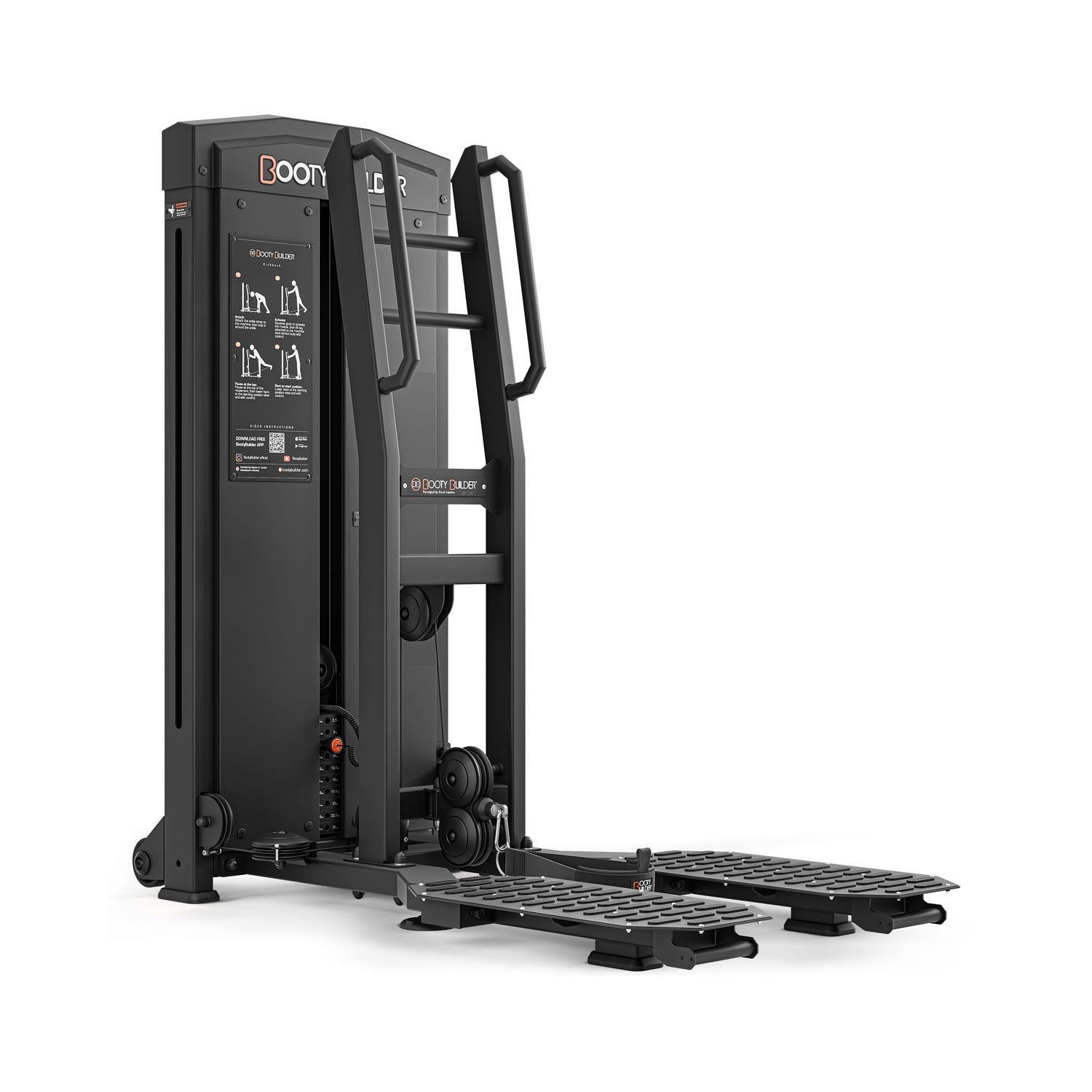 Booty Builder Selectorized Kick Back Machine features a 110LB / 50KG weight stack for quick and easy weight changes. BootyBuilder raised foot platform allows you to swing your leg without your foot hitting the floor. Designed for athletes of all sizes, this machine offers multiple handle options for a customized and comfortable experience. Its compact and sturdy design ensures durability and stability during workouts, making it an essential addition to any gym.