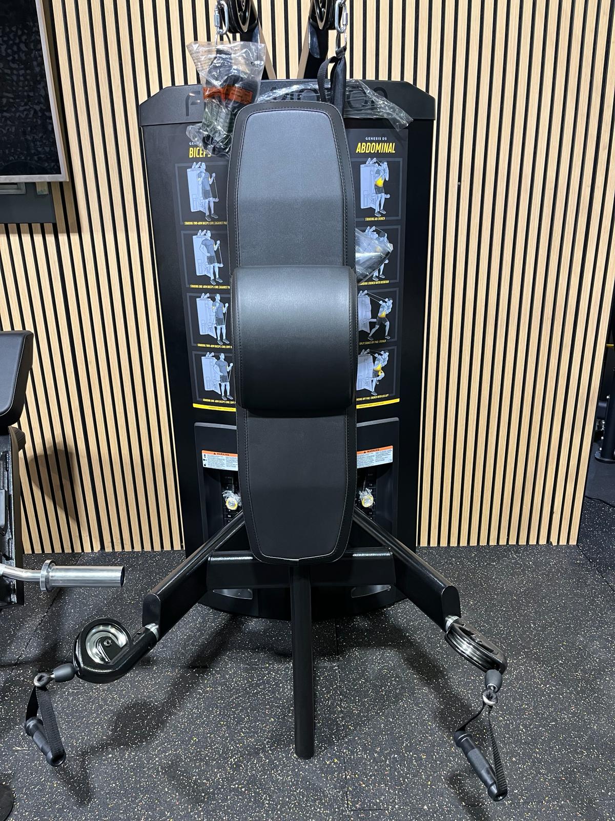 - Weight Stack Configuration 2 – 10 lb top plates, 34 – 10 lb plates, 2 – 4.5 kg top plates, 34 – 4.5 kg plates