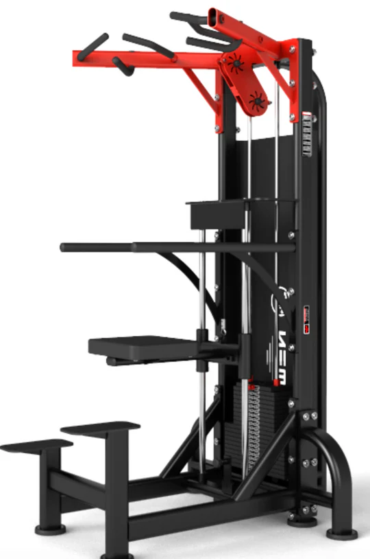 Newtech Onhim Chin & Dip Assist machines are highly adjustable, with various grip and foot positions to accommodate lifters of all sizes, focusing on major movements and large muscle groups for natural and smooth motion.