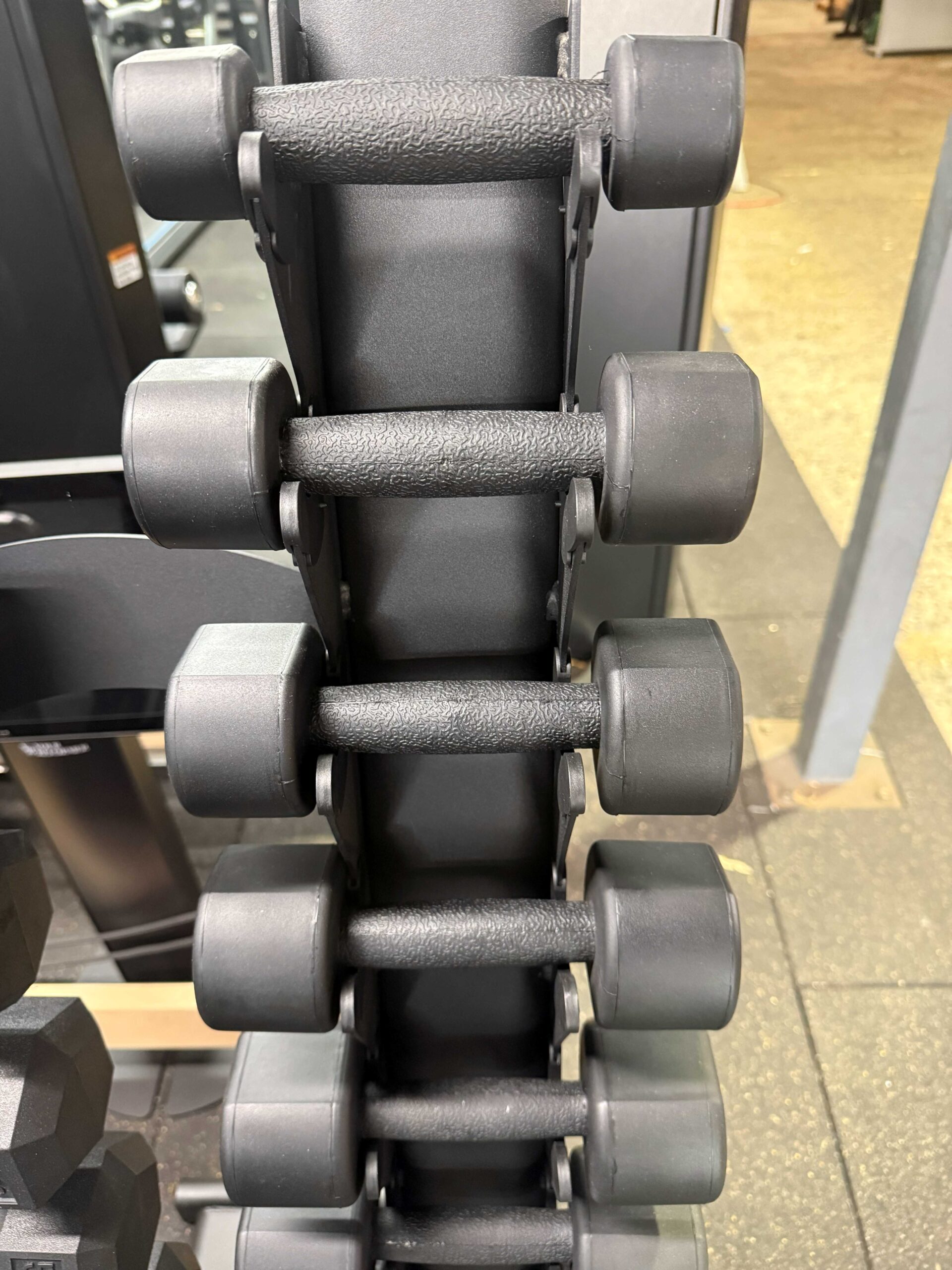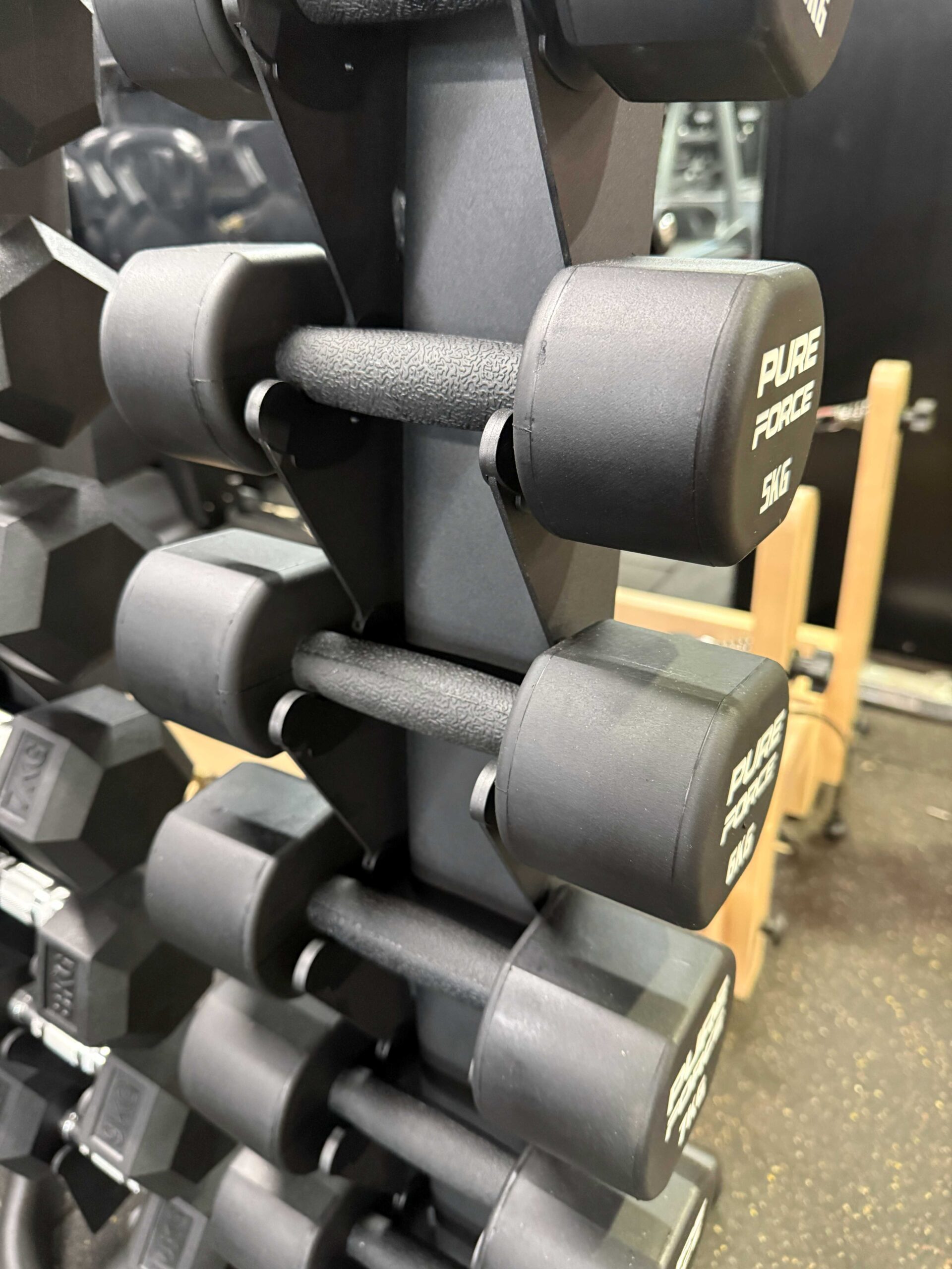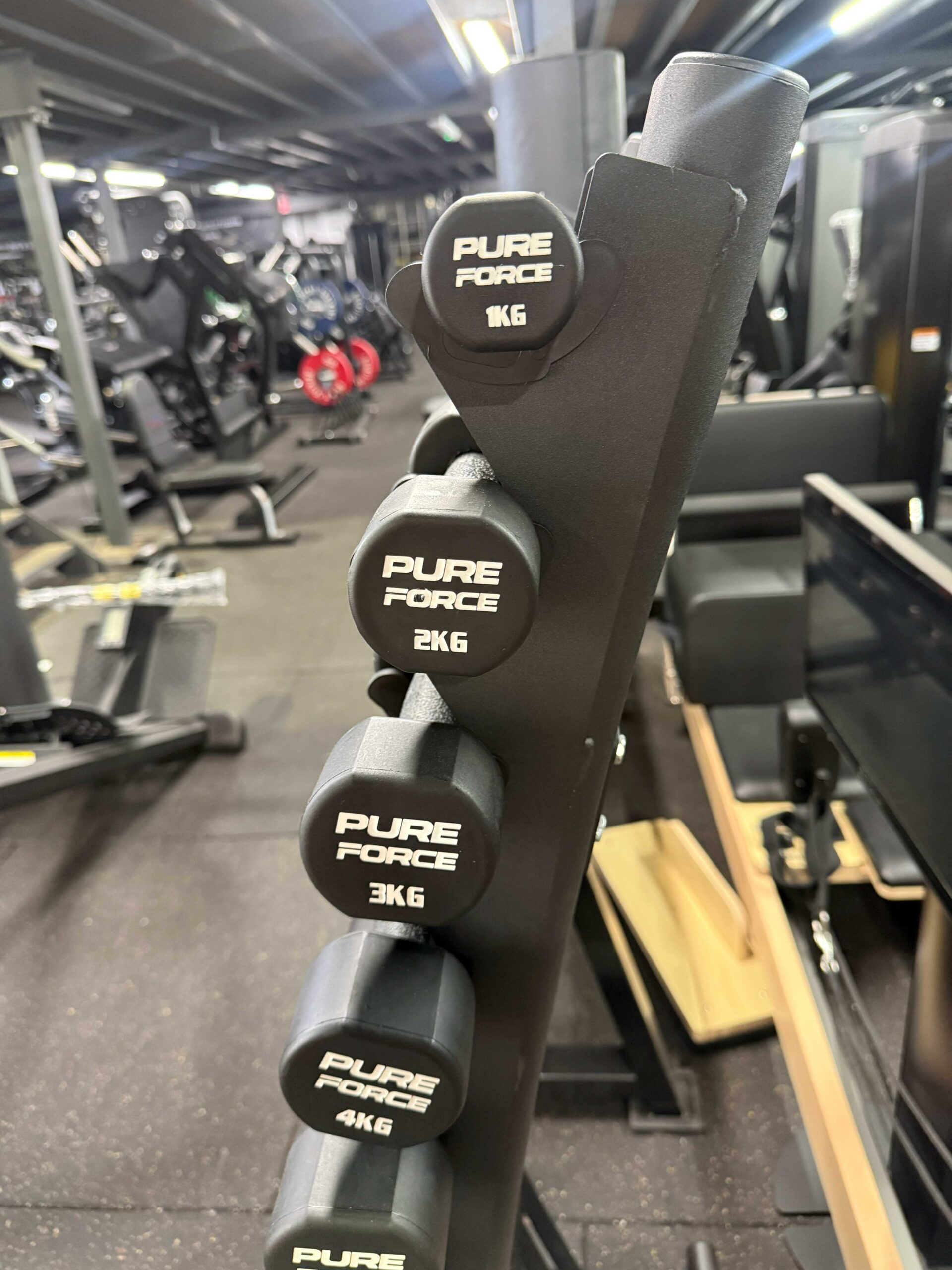 – Available in sets of 1-10kg in 1kg increments with dumbbell rack.